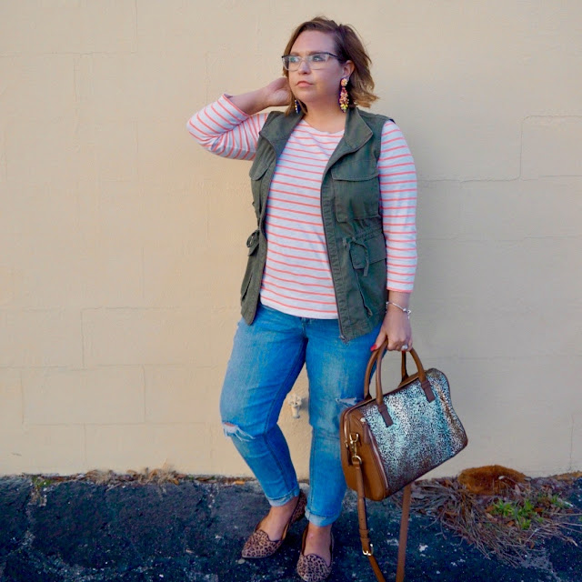If you know me well, then you know I'm obsessed with leopard print, I'm a sucker for anything with this print. So when I found this basic, cotton, leopard print tee, I knew it had to be mine. I paired it with a pair of jean leggings and two tone flats that were also thrifted; both which I have worn the life out of since finding them.